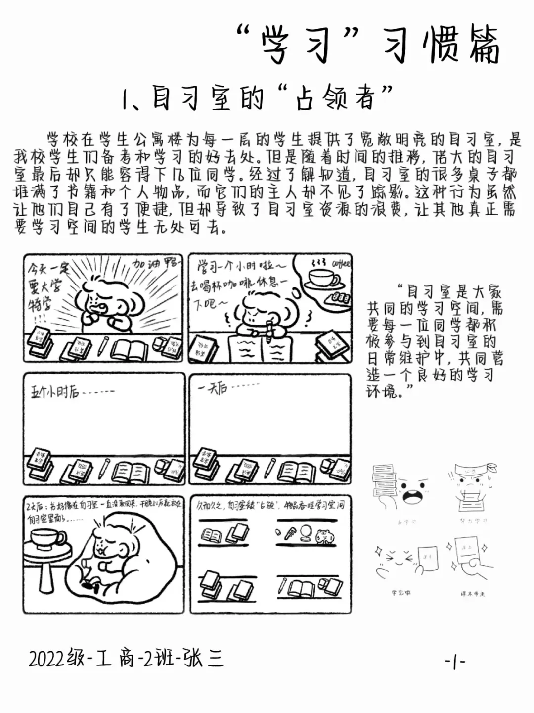 1. 每一条“好习惯”需包含:1条好习惯(简洁直接表达内容)+1个相关事例分享+照片、手绘漫画等作品进行生动演绎。